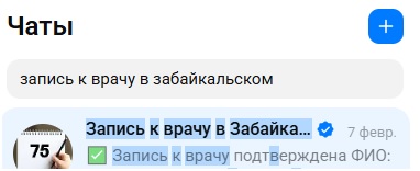 2. В поиске чатов ввести запрос Запись к врачу в Забайкальском крае