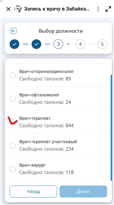 8. Выбрать запись на прием к врачу.