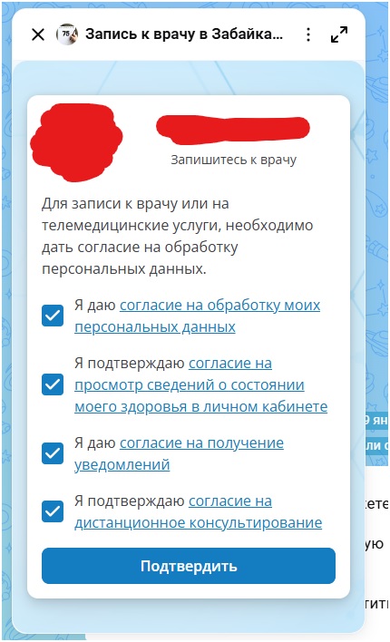 По окончании записи в чат-бот в МАХ приходит уведомление – подтверждение о записи на прием.