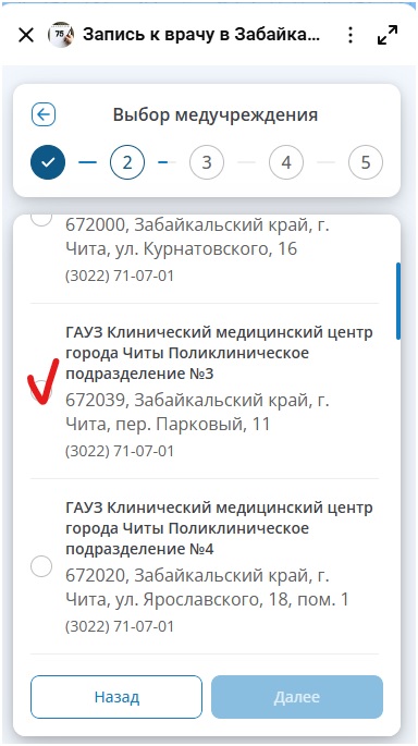 10. Выбрать медицинскую организацию, куда необходимо записаться.
