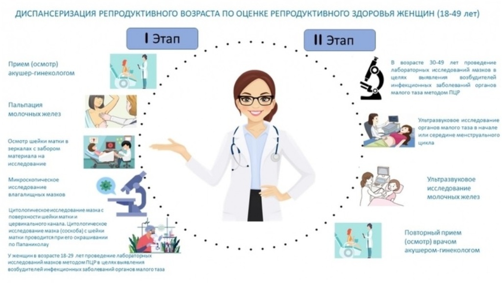 На базе поликлиники проводится диспансеризация репродуктивного возраста. Для записи на приём необходимо обратиться в регистратуру поликлиники лично или по телефону 83024426400. При себе необходимо иметь полис ОМС и амбулаторную карту.